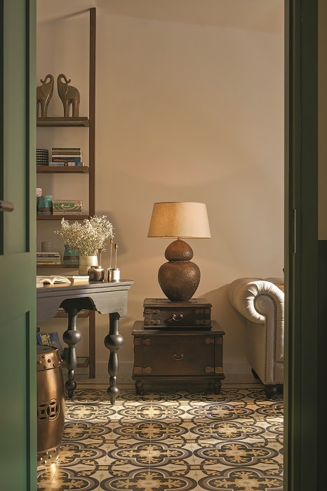Một số nét đặc trưng trong nhà ở truyền thống đã được lựa chọn và áp dụng, điển hình là hình thức cửa vòm được bo tròn mềm mại, decor nội thất cũng ưu tiên có hình dáng bo tròn, sàn gạch bông xưa cũ. Ngoài ra những loại vật liệu của bản địa cũng được chọn lọc và đưa vào sử dụng, trang trí như mây - tre - nứa, đồ gốm thủ công, gạch gốm, ... từ đó hình thành nên không gian nội thất thân thuộc đến nỗi tưởng chừng như ngôi nhà đã được xây dựng trước thập niên 2000 nhiều năm tuổi.